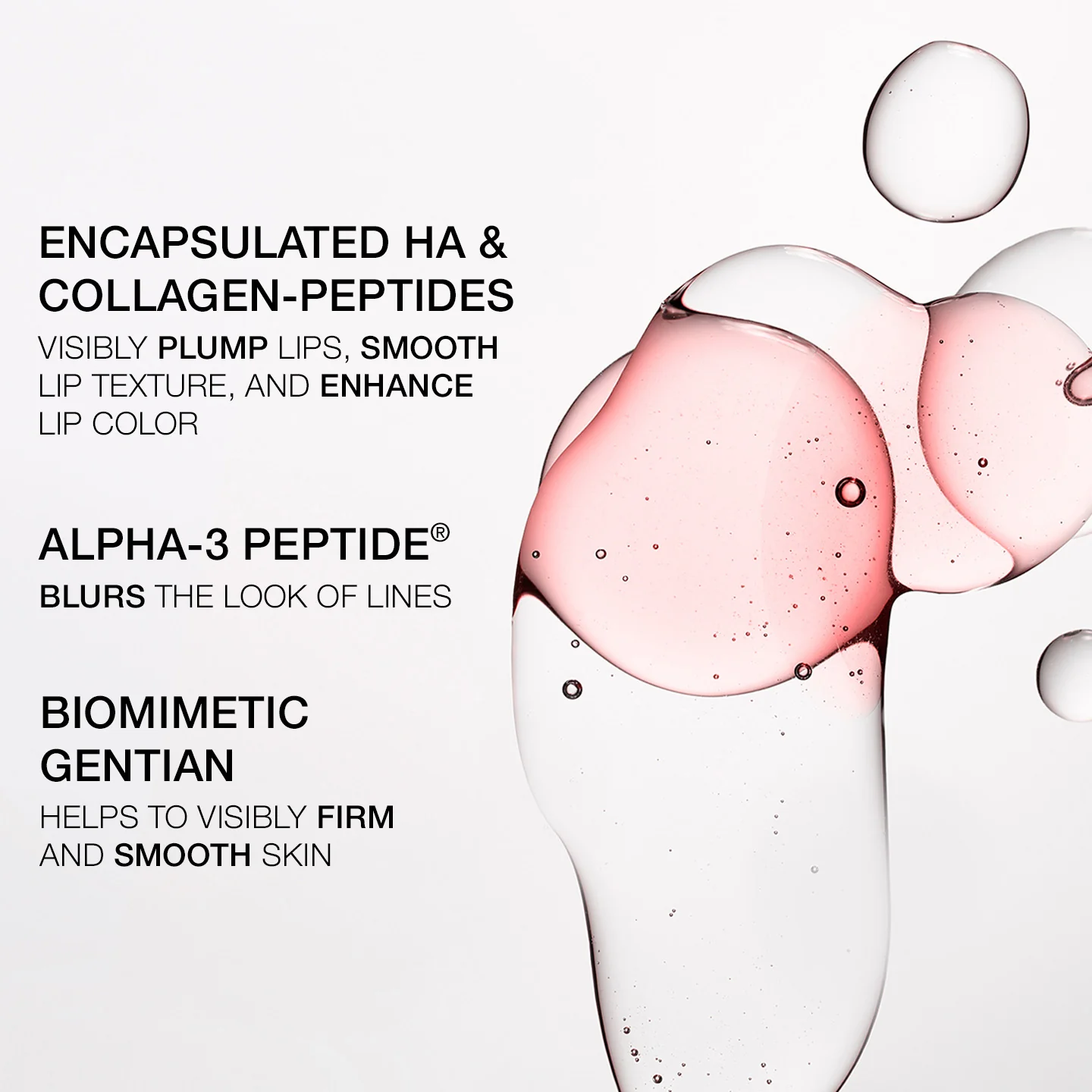 On one end is the Plumping Treatment – a Hyaluronic Acid serum for lips with Collagen-Peptides to immediately hydrate and help restore volume.