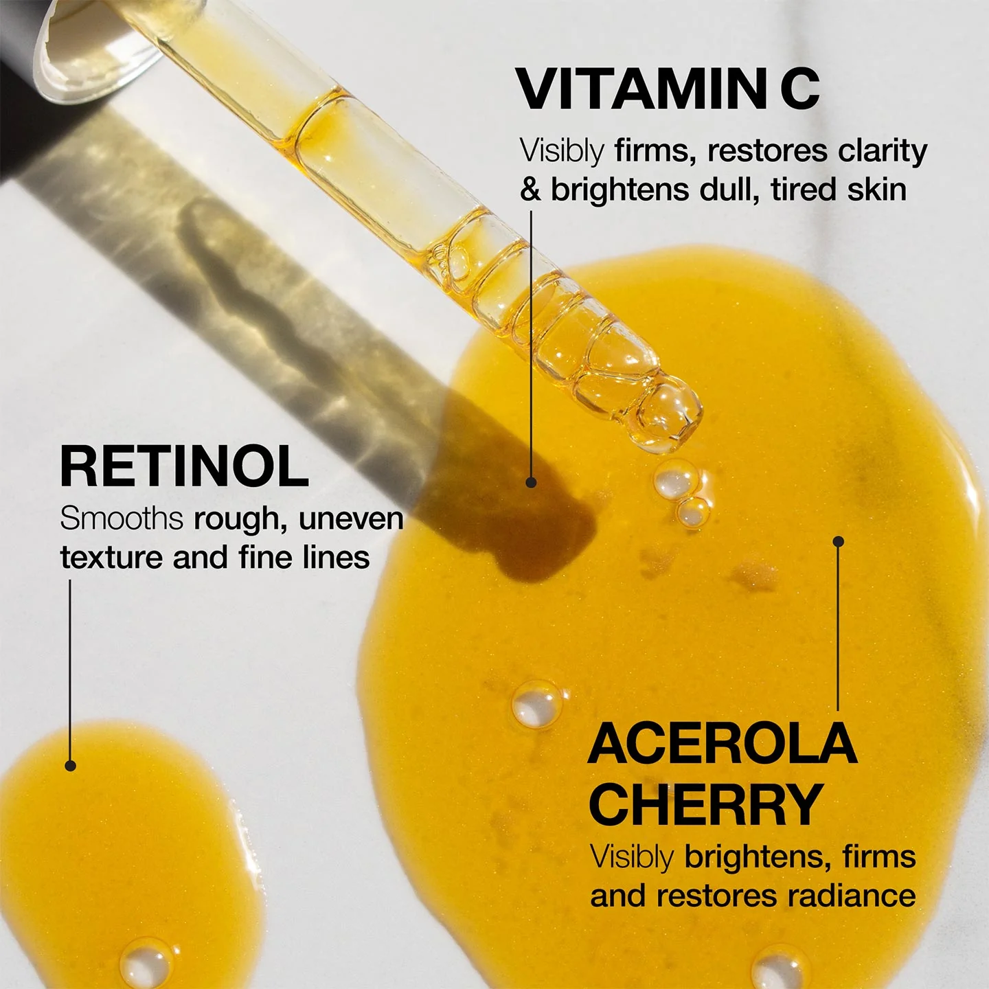 Together at last: the brightening power of Vitamin C and the correcting power of Retinol join forces in one supercharged, lightweight serum.
